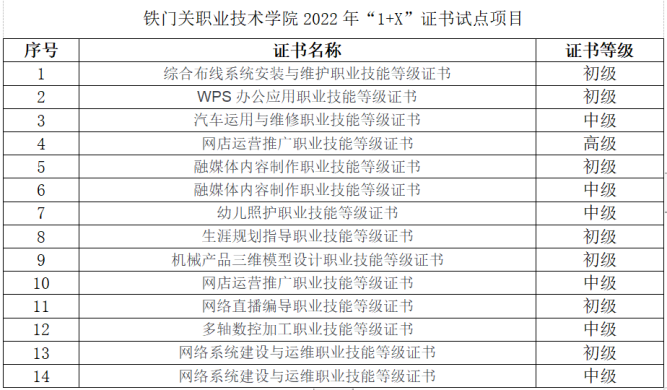 目前,学院2022年申报的幼儿照护(中级)、网店运营推广(高级)、WPS办公应用(初级)、融媒体内容制作等14个“1+X证书”试点项目通过了兵团教育局审核。