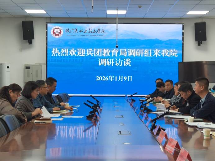 为做好兵团“十五五”教师队伍建设发展规划编制工作,提高编制工作的科学性、专业性和前瞻性,1月9日,兵团第一调研组走进Beat365中文官方网站。调研组组长、兵团党委、兵团原副秘书长黎兴平带领一行5人,与学院党委书记李贤良、院长苏强及相关部门、二级学院负责人、教师代表座谈交流。
