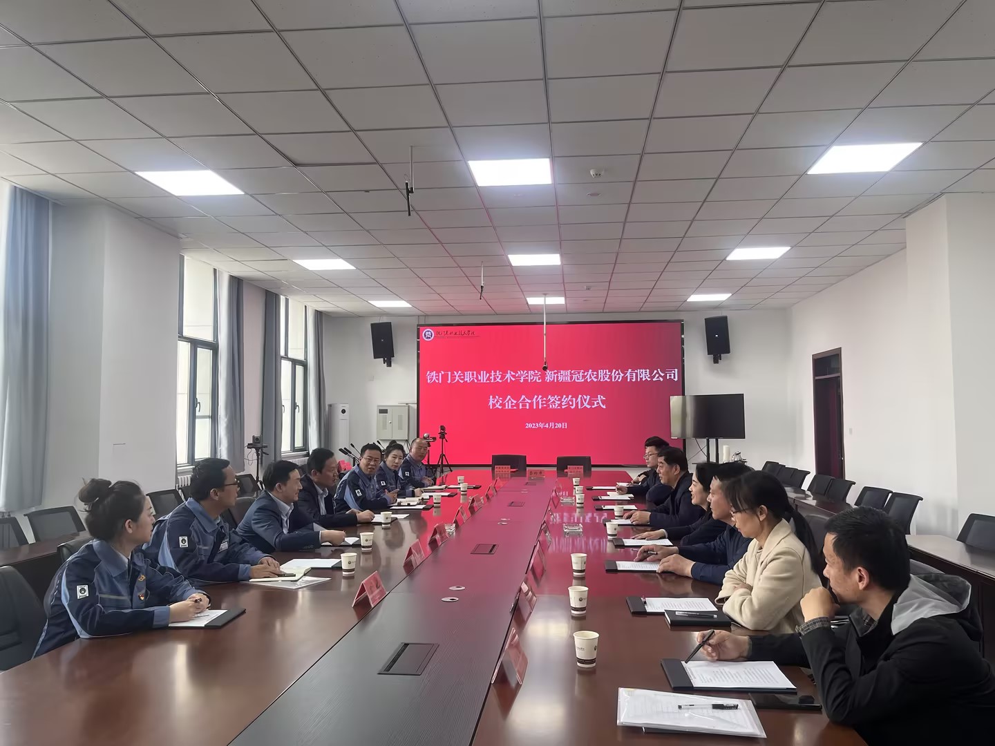 为深化产教融合,创新人才培养模式,促进就业办学高质量发展,拓宽学生实习和就业渠道,4月20日下午,Beat365中文官方网站与新疆冠农股份有限公司开展座谈会并举行签约仪式。