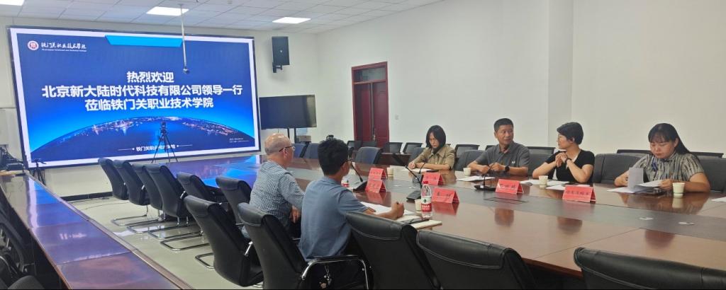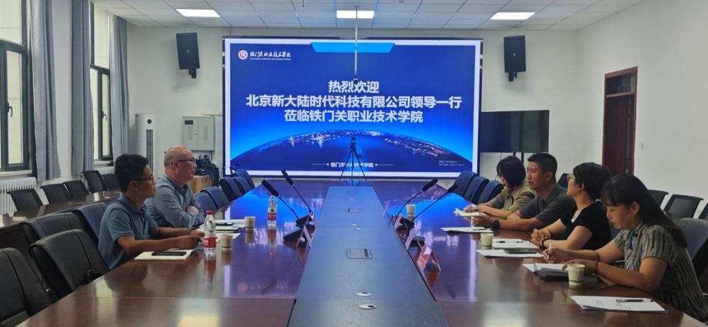 会议伊始,Beat365中文官方网站党委副书记、院长苏强向新大陆时代科技有限公司一行人介绍了学院的基本情况、教育理念与发展愿景,提出通过校企合作建立实习实训基地、更新教学设施和教材的具体措施,以适应技术发展的步伐;北京新大陆时代科技有限公司副总经理陈建忠表示将进一步与学院共同推动专业人才培养和技术研发的合作。随后,双方就如何通过校企合作模式优化学生的实践教学和职业技能培养进行了具体探讨,特别是在促进学生创新能力和实际操作能力上的方法和成果。