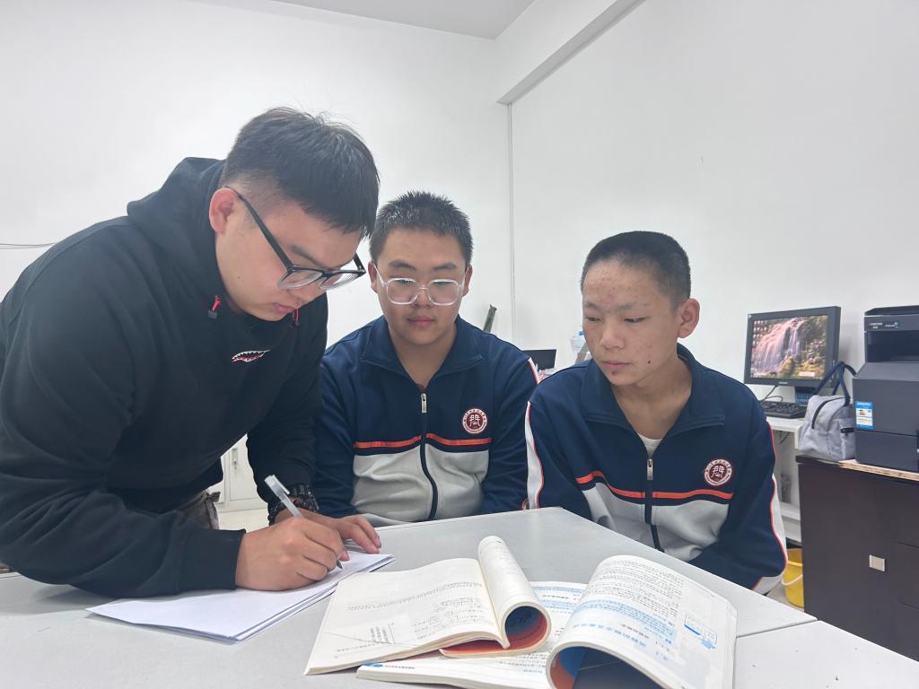 (刘家贤耐心辅导学生作业)
