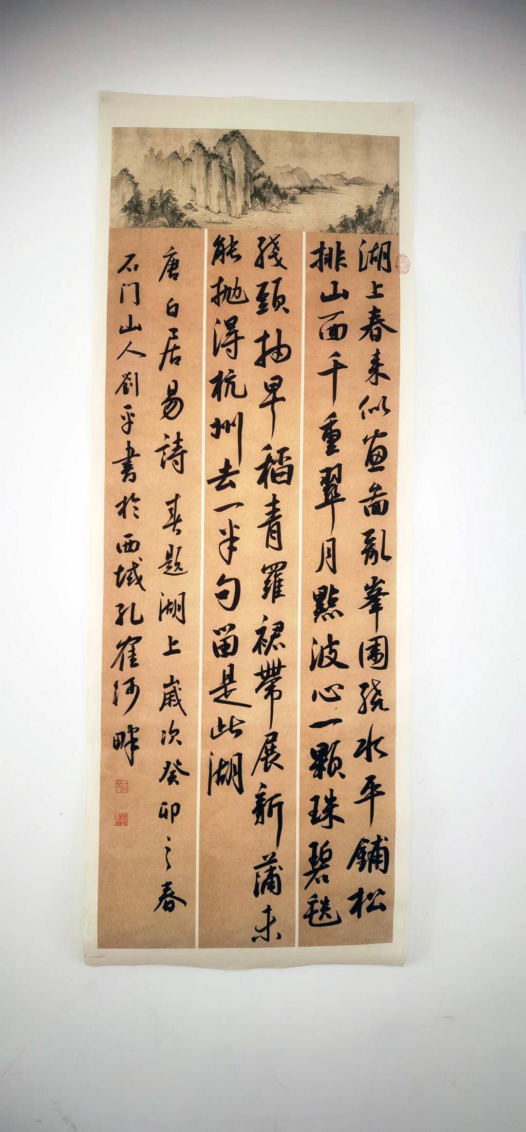 此次参展作品包括经典临摹和自由创作两个部分,该生的临帖作品《节临颜家庙碑》和创作作品《春题湖上》,体现了其扎实的基础功底和创作能力,以及在书法学习上的多元创造和卓有成效,充分展现了师市开放大学的师生风采。