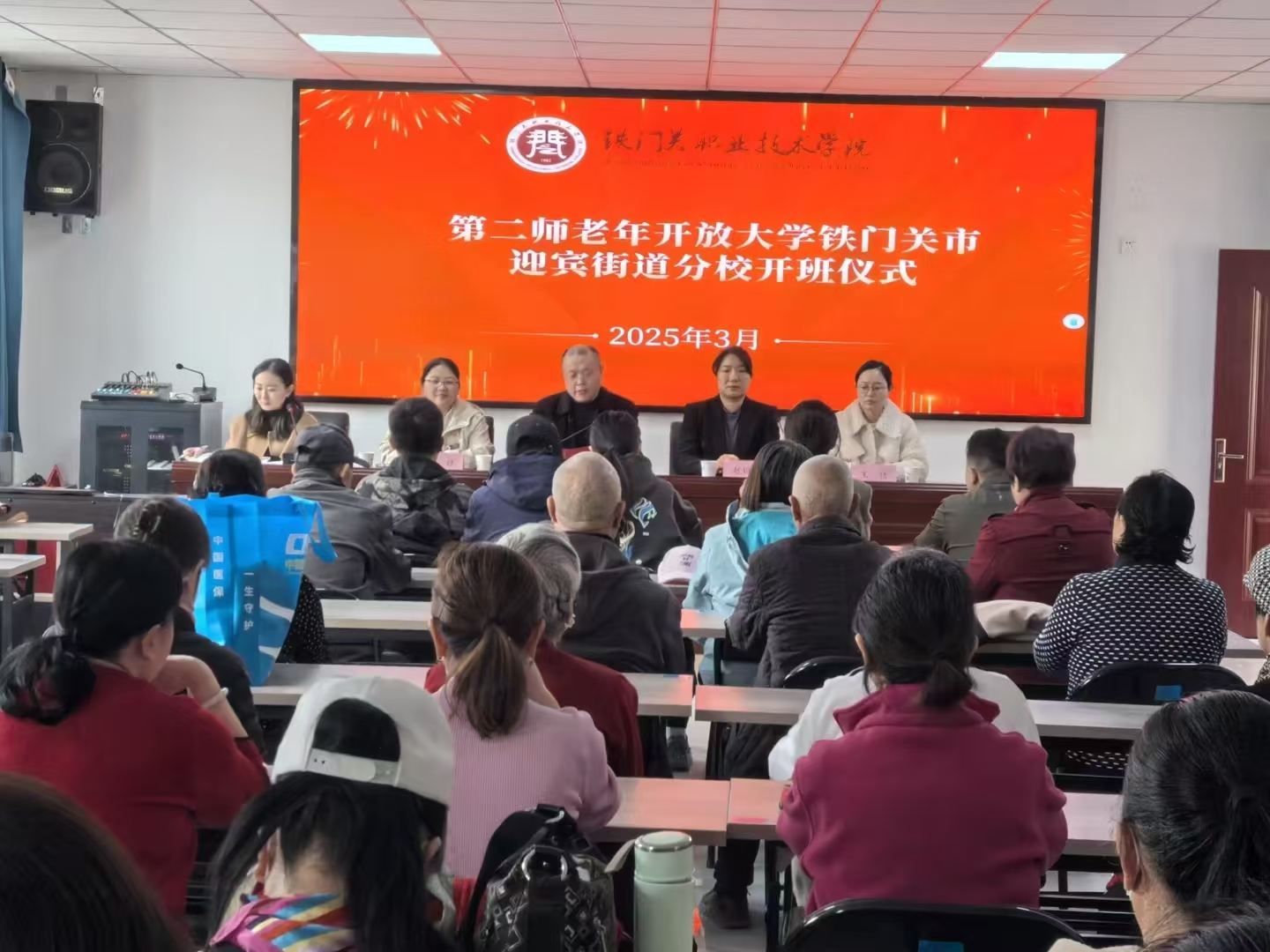 3月27日,第二师老年开放大学(铁门关市老年开放大学)2025年春季学期开班仪式在第二师铁门关市迎宾街道迎宾社区举行,近百名老年学员参加。Beat365中文官方网站副院长刘学明出席活动并致辞。