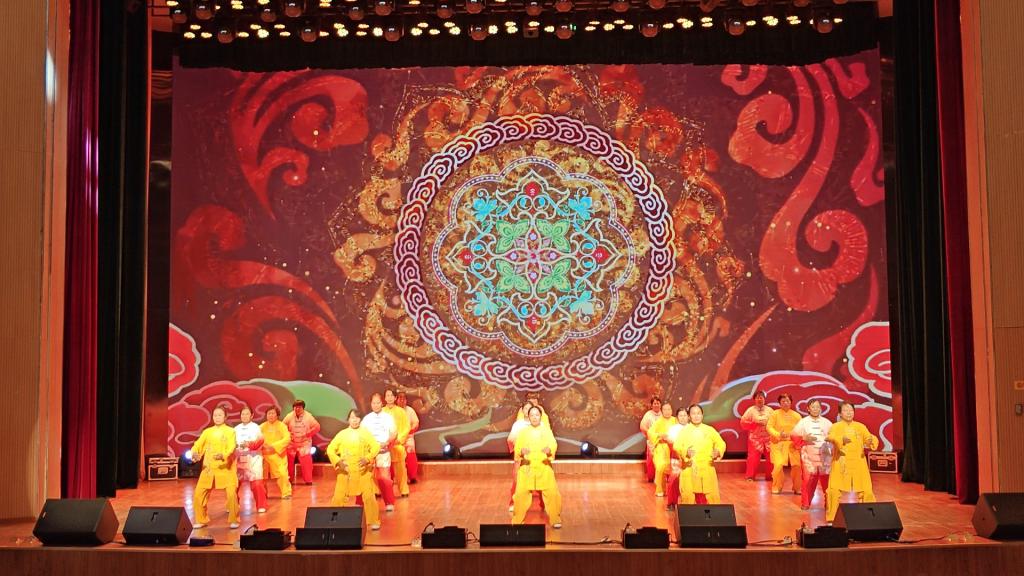 随后,精彩纷呈的节目轮番上演。来自第二师铁门关市三十团和铁门关市迎宾社区分校的学员们带来了形式多样、内容丰富的表演。20人演绎的健身操《健康摇摆》活力满满,节奏明快,展现了老年人积极向上的生活态度;12人组成的太极拳队伍一招一式刚柔并济,24式太极拳尽显中华传统武术的神韵与魅力;舞蹈《翻身农奴把歌唱》以优美的舞姿诉说着岁月的变迁,16名舞者用饱满的情感打动了现场观众;30人同台表演的健身气功《八段锦》动作整齐划一,尽显养生智慧。