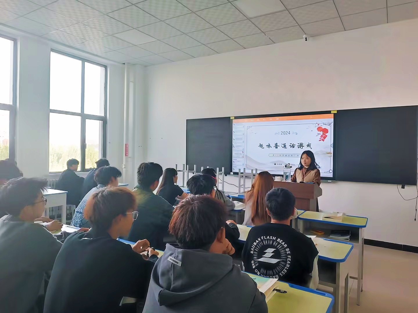 2024级化工智造2班的朱宇航分享道:“这次活动让我深刻意识到了说好普通话的重要性,尤其是传话接龙环节,普通话不好会让我无法理解他说的内容。所以一起说好普通话可以让我们更好地传情达意,便于同学之间的沟通。”