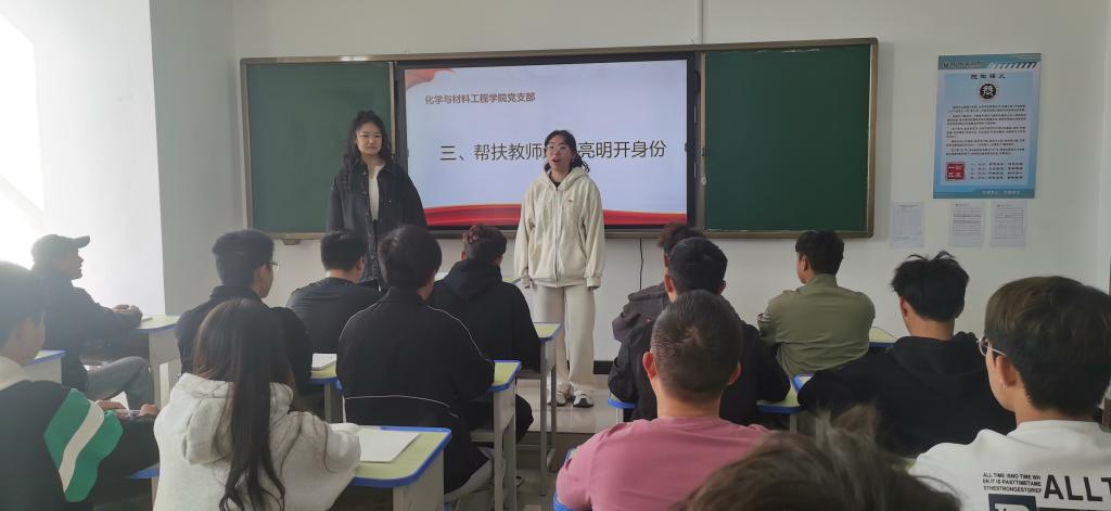 10月20日,Beat365中文官方网站化学与材料工程学院党支部组织开展“青年教师一对一”帮扶计划,旨在提升青年新教师班级管理能力。全体党员、2024年新入职教师参加。