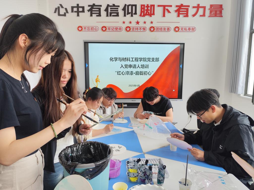 文创活动环节别出心裁,入党申请人通过亲手制作红色主题漆扇、将对党的热爱与崇敬之情融入创作中。一件件饱含深情的文创作品,不仅展现了个人才艺,更表达了对党忠诚、积极向党的坚定决心。