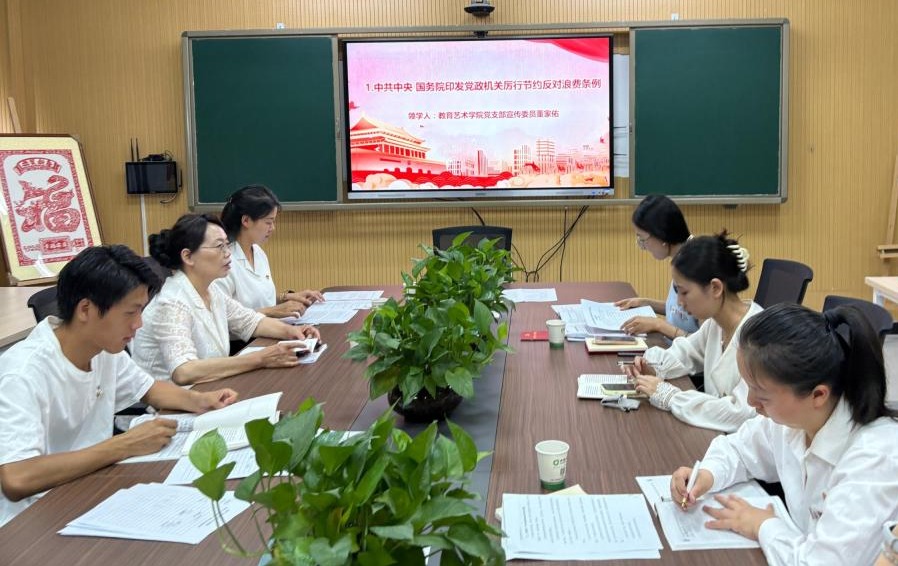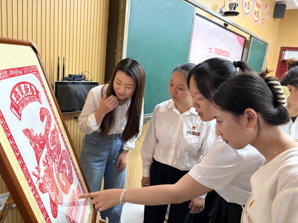 理论学习环节,党支部委员带领全体党员学习《中国共产党章程》第七章“党的纪律”,并结合典型案例强化纪律意识。随后,党员教师围绕“如何将红色文化融入艺术教育”展开讨论。美术教研室教师董家佑表示:“非遗剪纸不仅是技艺传承,更是红色精神的载体,我们要在教学中引导学生厚植家国情怀。”