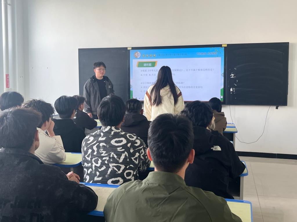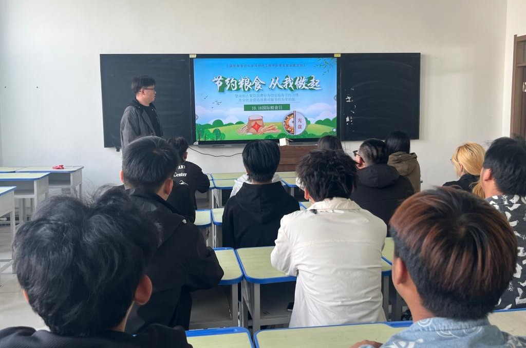 10月16日,党支部组织24级应用化工五年制1班和24级化工智能制造技术2班学生观看了《大国粮仓》主题纪录片,让学生们直观了解每一份粮食从土地到餐桌的全链条历程。在知识竞答环节,老师们将世界粮食日的由来、粮食安全政策、节粮减损知识等以趣味问答的方式融入题目,让学生在轻松愉快的氛围中掌握粮食安全相关知识。