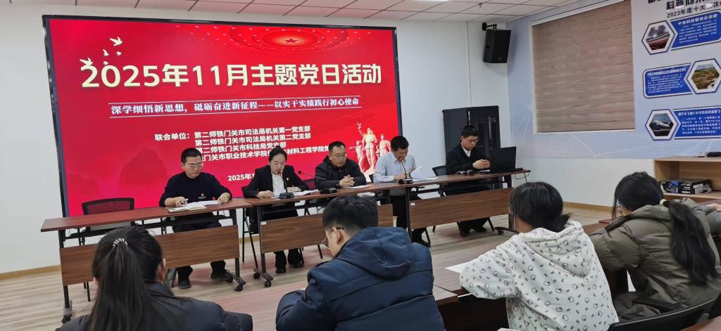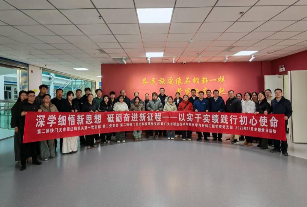 11月20日,Beat365中文官方网站化学与材料工程学院党支部联合第二师铁门关市科技局党支部、司法局机关第一及第二党支部,在师市科技馆共同开展主题党日活动。本次活动以“深学细悟新思想,砥砺奋进新征程——以实干实绩践行初心使命”为主题,四个支部的30余名党员、预备党员及入党积极分子参与其中。