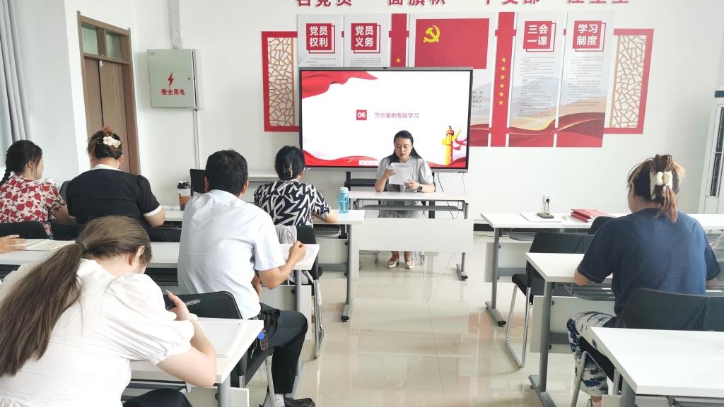 在警示案例专题学习中,借助反面案例敲响触碰党纪法律红线的警钟,警示党员时刻保持头脑清醒,坚守师德底线,维护教育领域的风清气正。 党员代表徐盈盈、张爱娜同志进行交流发言,进一步提升了党员同志的党性修养,增强了党员的廉洁自律意识。