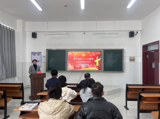 课上,她对全体党员提出要求,作为培养技能型人才的职业院校,我们要推进产学研协同创新发展,推进“三教统筹”,坚持把以人为本作为基本定位,努力培养数以千万“心是中国心,满怀中国情,充满中国味”的高素质技术技能人才,为实现“中国梦”提供强有力的人才和技术技能支撑,全体党员应深入结合《中共中央关于认真学习宣传贯彻党的二十大精神的决定》文件精神,将自己的本职工作做到位。