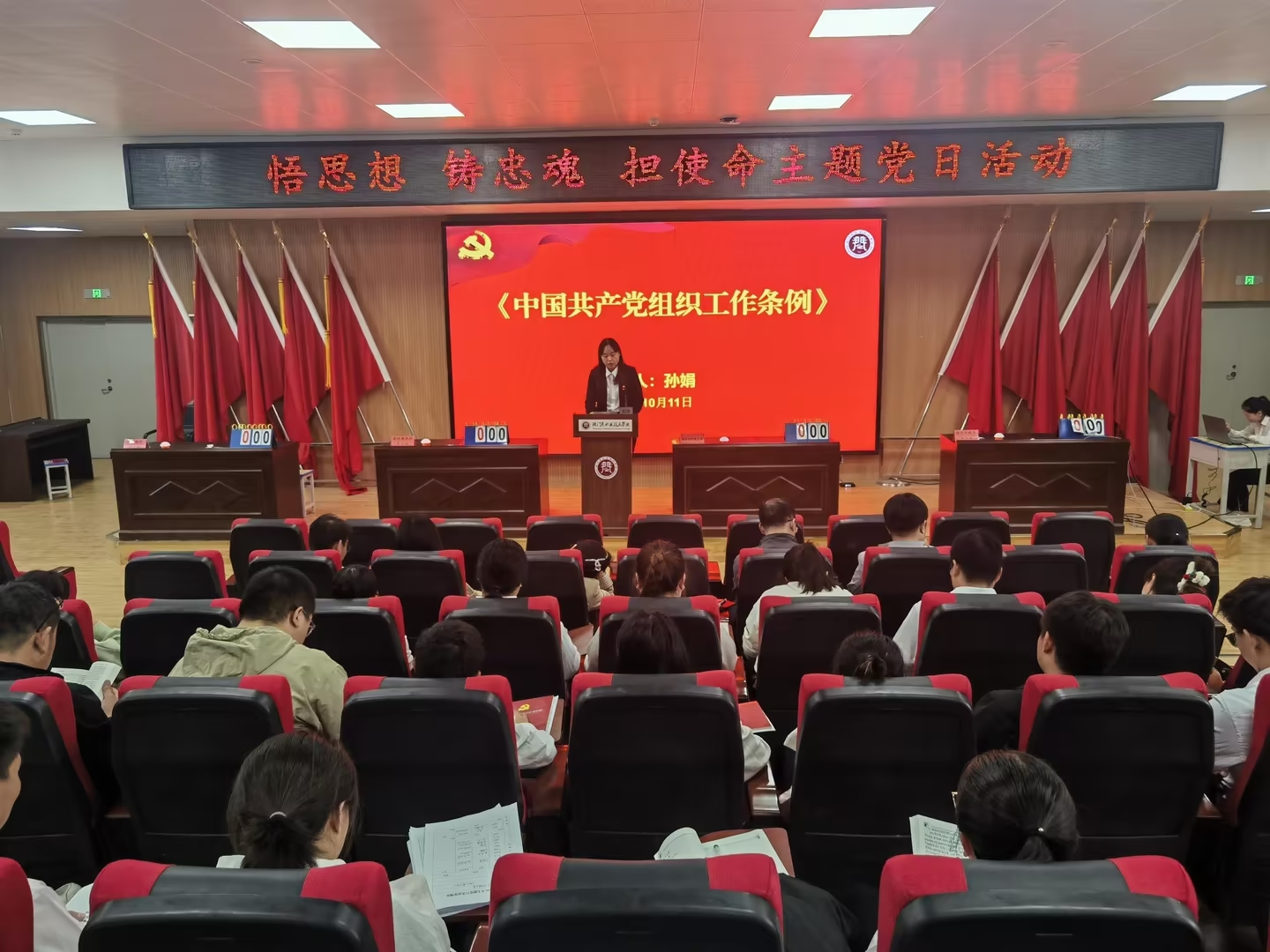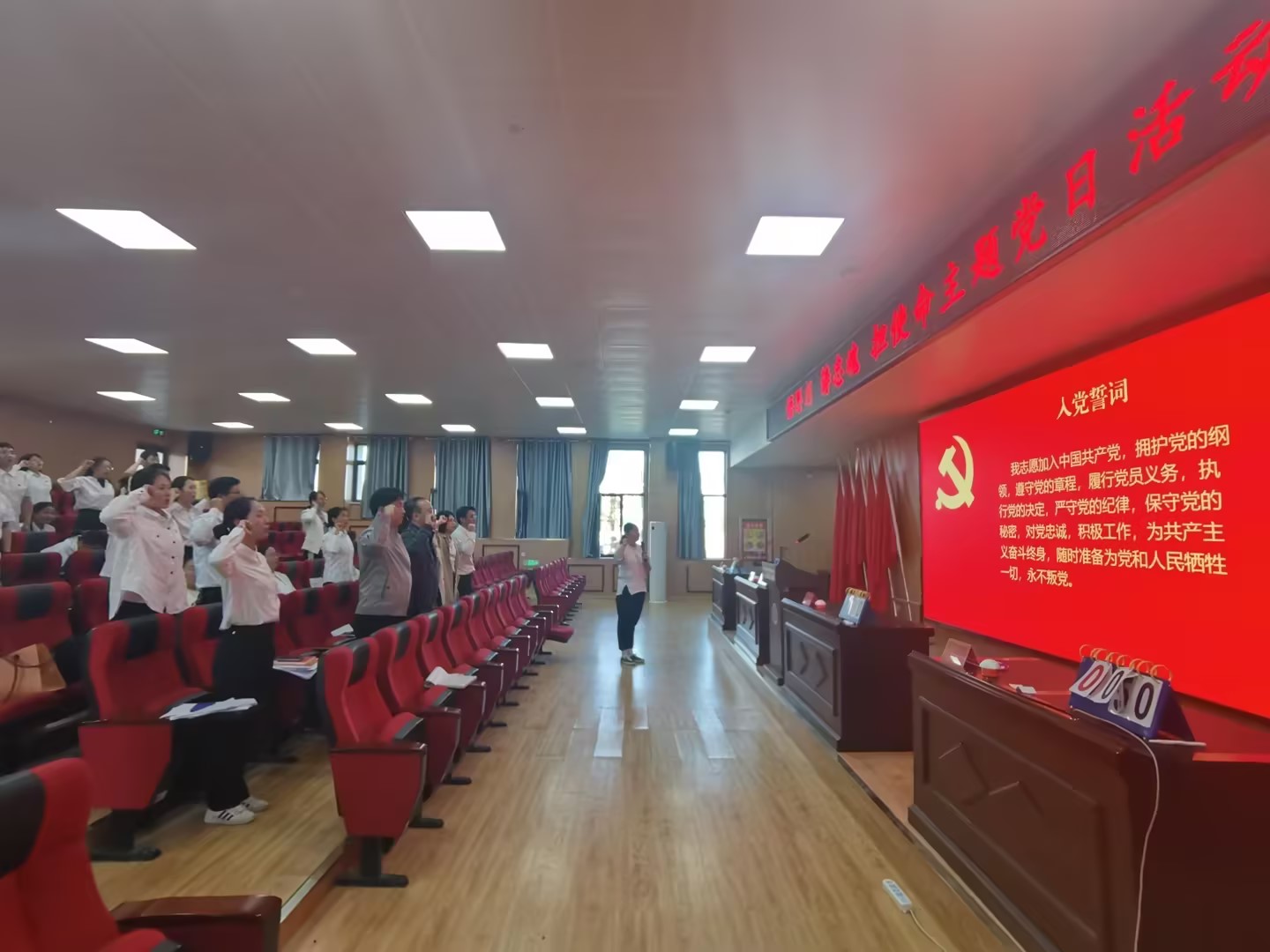 活动伊始,在思政教学部党支部书记的带领下,全体党员面对党旗庄严宣誓,一句句发自肺腑、饱含深情的铿锵誓言,汇聚了每一位党员对党绝对忠实的承诺。