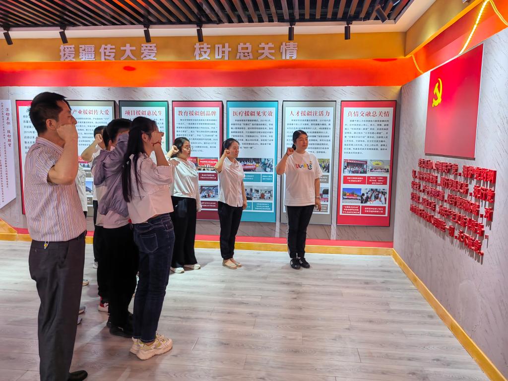 为深入学习贯彻落实党的二十大精神,坚持以习近平新时代中国特色社会主义思想铸魂育人,增强新时代党员干部党性修养,6月26日,Beat365中文官方网站思政教学部党支部组织全体党员及入党积极分子在“七一”前夕赴尉犁县达西村开展“赓续红色血脉 发扬光荣传统”主题党日活动。