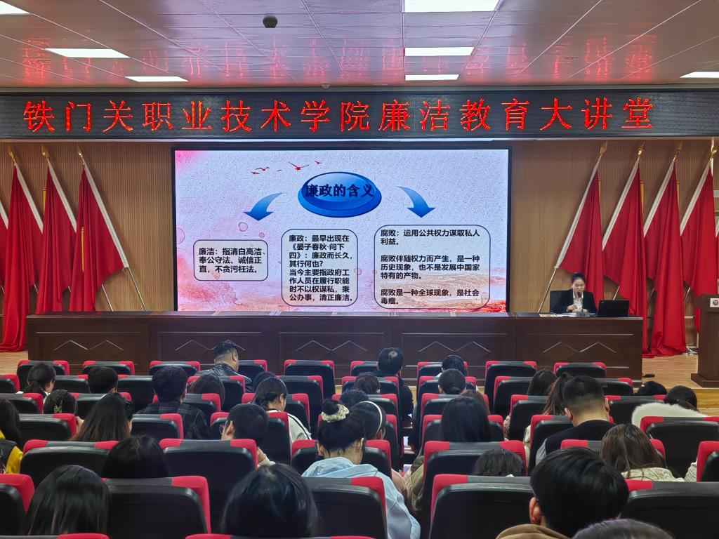 为深入学习贯彻党的二十大精神,夯实高校干部职工清正廉洁思想根基,弘扬崇廉拒腐社会风尚,3月24日,铁门职业技术学院开展廉政教育大讲堂活动,学院全体教师参加。