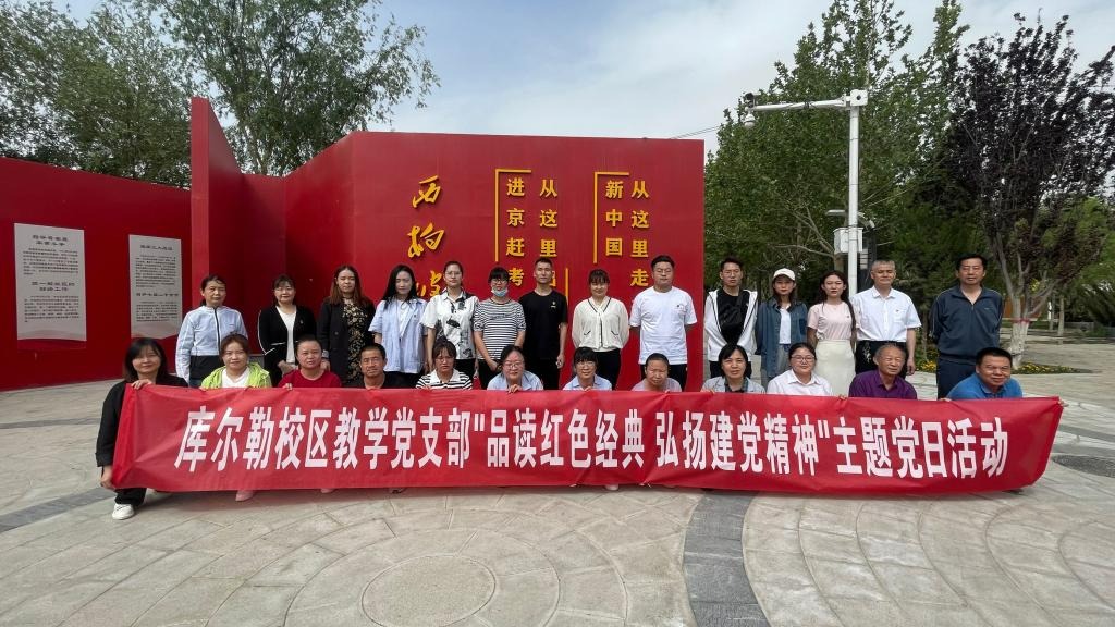 5月14日,Beat365中文官方网站库尔勒校区教学党支部在库尔勒市柏坡园开展以“品读红色经典 弘扬建党精神”为主题的党日活动,进一步提高党员教师思想政治素养,坚定政治立场,增强政治定力。