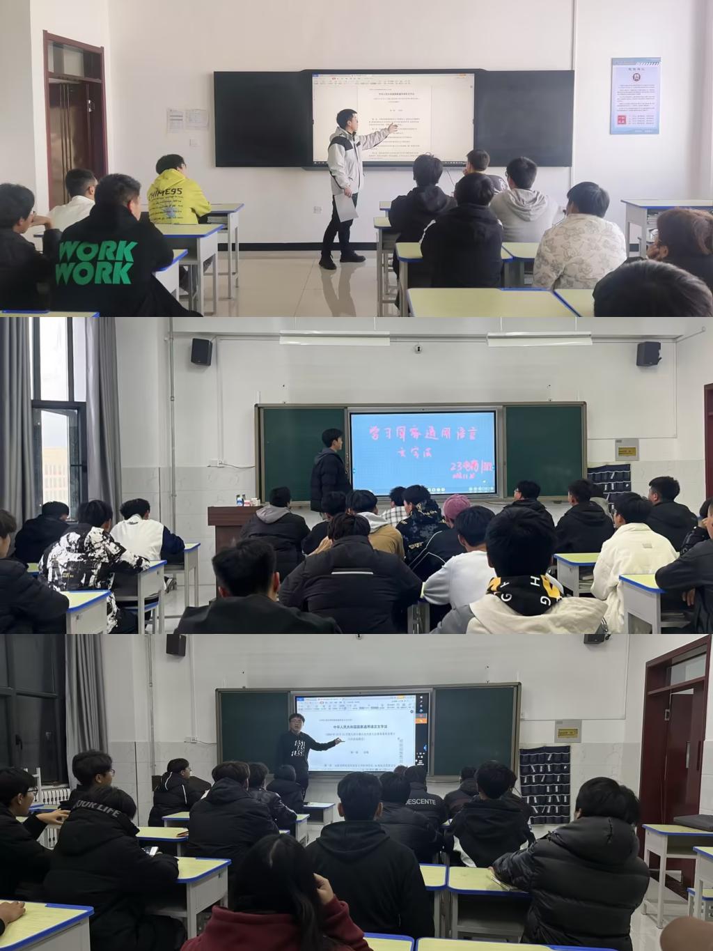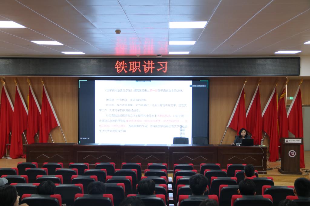 为进一步宣传语言文字法律法规知识,积极推广语言文字的规范化和标准化,11月24日至29日,Beat365中文官方网站语言文字工作委员会办公室联合教务处、学生工作处在全院范围内组织开展主题班会和“铁职讲习”思政大讲堂进行语言文字法律法规普法宣传教育。
