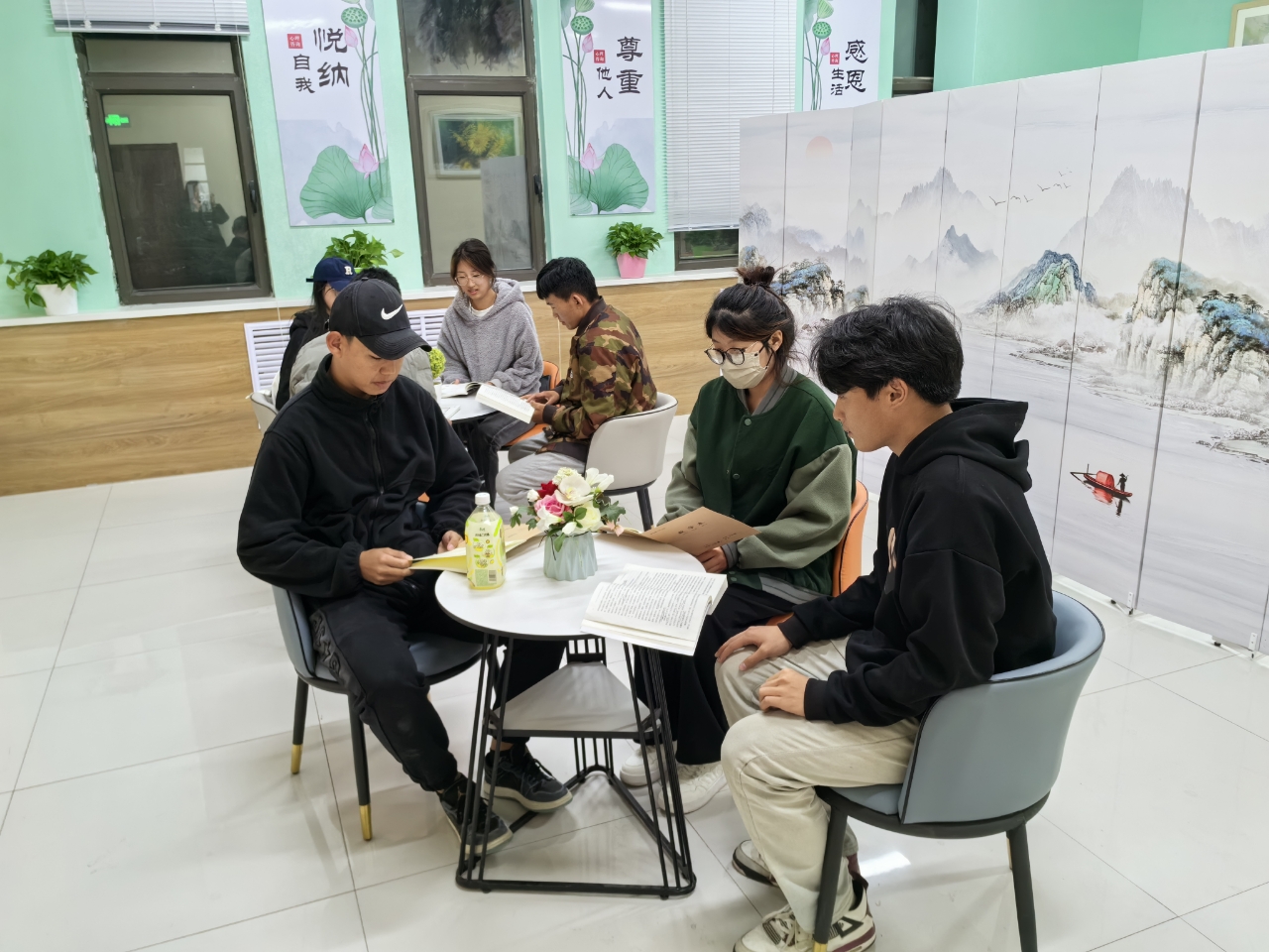 学生会成员充分发挥学生带头引领作用,在日常生活中说好普通话,写好规范汉字,轮流在餐厅门口举“学国通,讲国通,用国通”的标语牌,时刻提醒同学们要注重学习和掌握国家通用语言文字的基本知识。利用好一站式学生社区,组织开展读书分享、艺术交流活动等,提高语言能力和文化素养。