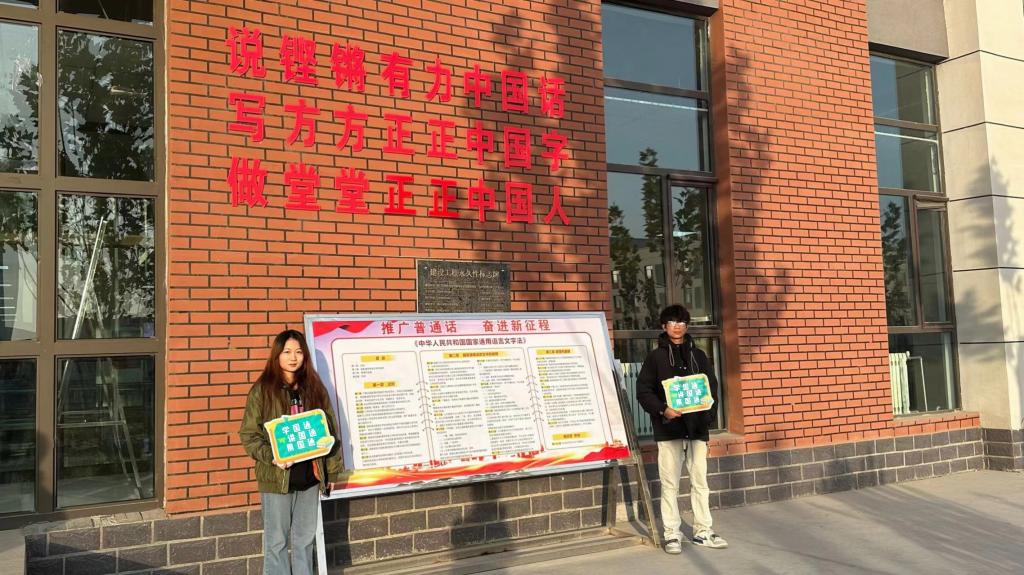2023级新生蔡明轩说道:“作为大学生,我们的一言一行都代表着学院和国家的形象。因此,我们要从自身做起,讲普通话、写规范字,遵守法律法规。”2023级新生阿娜尔古丽·赛迪艾合麦提说:“作为当代大学生,我们应该以高度的责任感和使命感,积极推广国家通用语言文字,促进各民族交往交流交融,为实现中华民族伟大复兴的中国梦贡献自己的力量。”