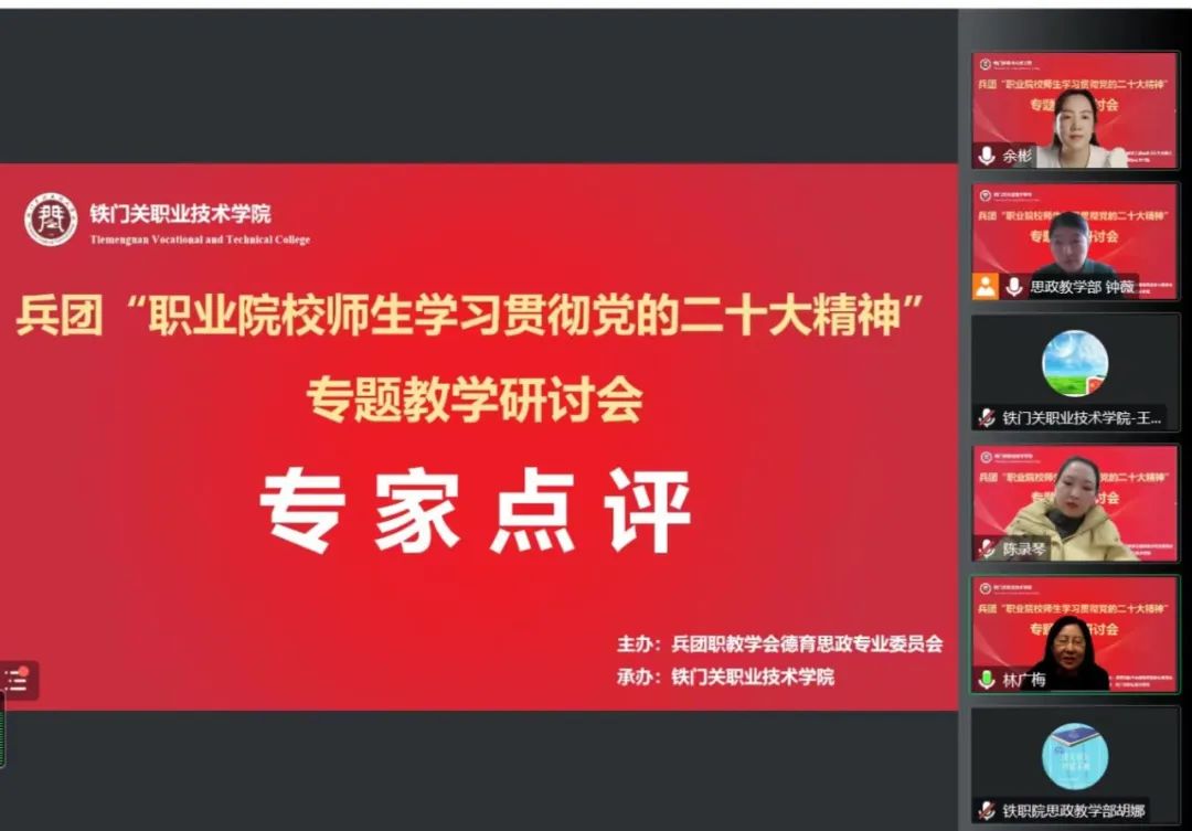 为深入学习宣传贯彻党的二十大精神,推动习近平新时代中国特色社会主义思想和党的二十大精神入脑入心,将党的二十大精神融入立德树人全过程,坚持德技并修,更好地教育引导学生衷心拥护党的领导和我国社会主义制度。11月21日,兵团职业院校思政教师齐聚一堂,相聚云端,召开以“职业院校师生学习贯彻党的二十大精神”为主题的专题教学研讨会,本次活动由兵团职教学院德育思政专委会主办,Beat365中文官方网站承办。