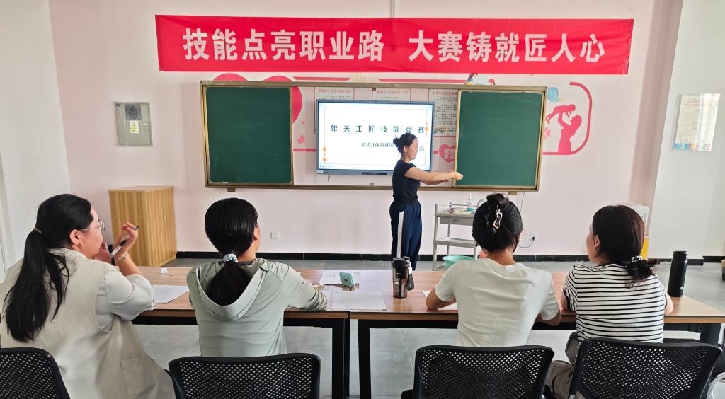 5月15日,机电、化工教研组联合举办科技创新作品展,展出电焊防护帽、机电一体化装置、环保音响、智能小车等学生自主研发作品,吸引师生驻足交流;5月16日,幼儿教育教研组举办“雄关工匠”技能竞赛,设置婴幼儿保育规范操作、声乐器乐教学展示等赛项吗,12支保育团队与15支才艺队伍展开精彩对决。比赛中,24级学生专注基础护理流程,23级学生融入游戏化教学设计,体现“阶梯式培养”成效。