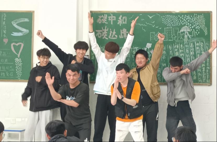 (22新能源汽修1班做团辅时学生摆出的团队造型)