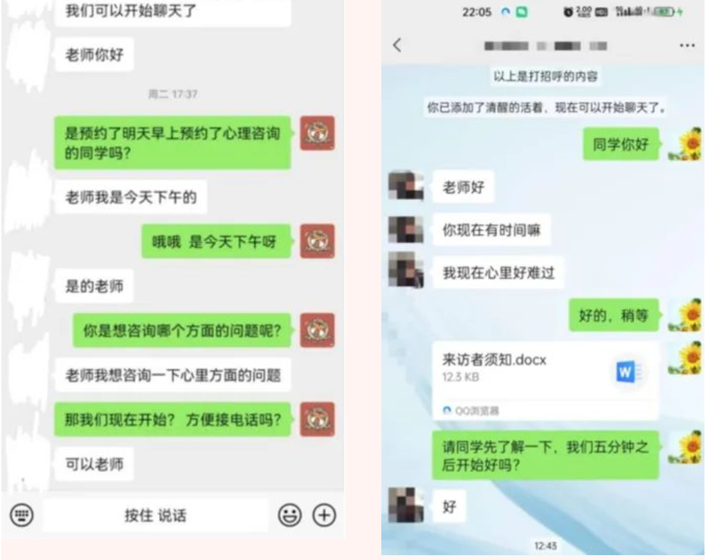 “你好,学院的心理老师吗?我是一名大一新生,现在心理压力很大,能不能帮帮我?”