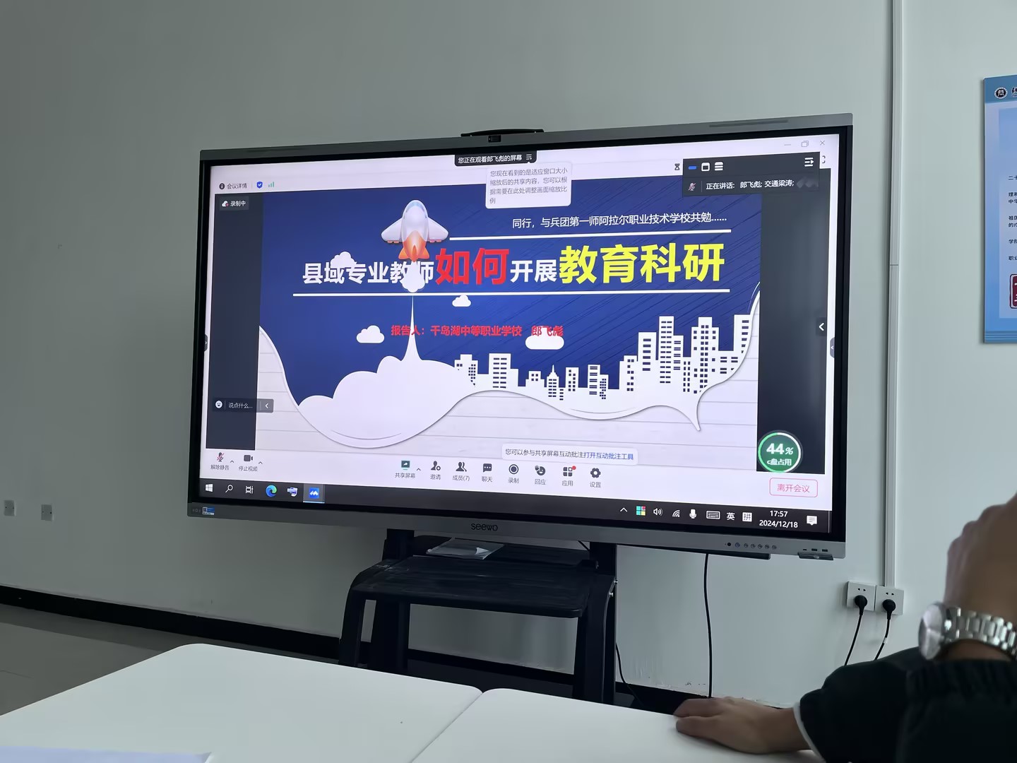 本次培训活动的主讲人为千岛湖中等职业学校朗飞彪老师,培训围绕“县域专业教师如何更好地开展教育科研”主题展开,旨在提升教师们的教育科研能力,推动县域教育事业的持续发展。在培训过程中,他深入浅出地讲解了教育科研的基本概念、方法和步骤,并结合具体案例,分析了县域专业教师在教育科研中可能遇到的困难和挑战。他强调,教育科研是提升教学质量、促进教师专业成长的重要途径,教师们应该积极投身其中,不断探索和实践。