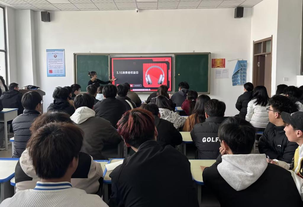 活动紧扣“守护消费安全,培育法治公民”主题,系统讲解《中华人民共和国消费者权益保护法》《网络交易监督管理办法》等法律法规。授课教师通过多媒体课件展示、典型案例视频解析,重点解读网络购物欺诈、预付式消费陷阱、直播带货虚假宣传等新型侵权行为的法律界定与维权路径,强调“每位学生既是市场经济的参与者,更是法治社会的建设者”。