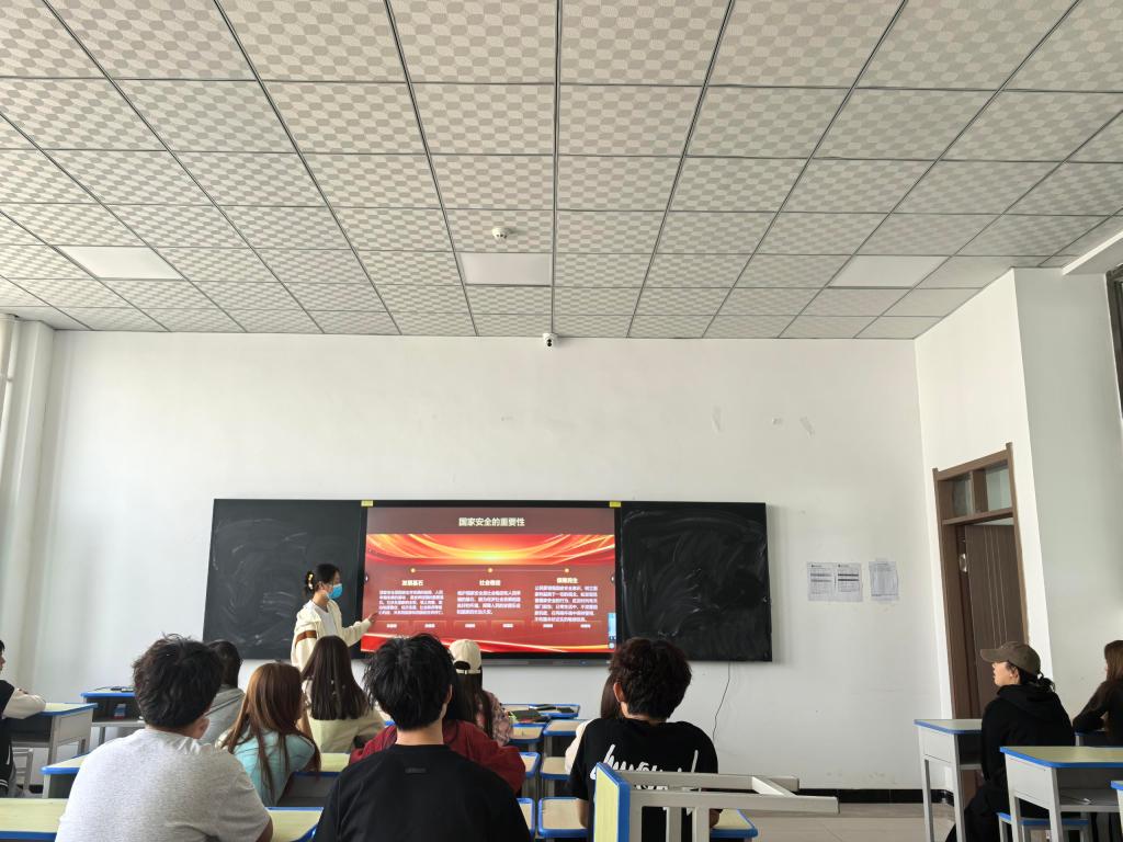 在化工楼209教室,王小丽教师重点从结合典型案例,围绕消防安全、防电诈、器材安全等主题为学生开展宣传活动。