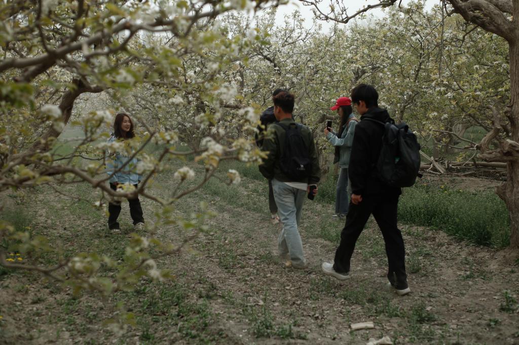 正值梨花盛开时节,在香梨基地,团队成员架起专业设备,多角度记录香梨的生长环境,多角度拍摄梨花,为后续制作宣传视频积累素材,力求后期呈现出香梨从开花到结果的全过程完整呈现。