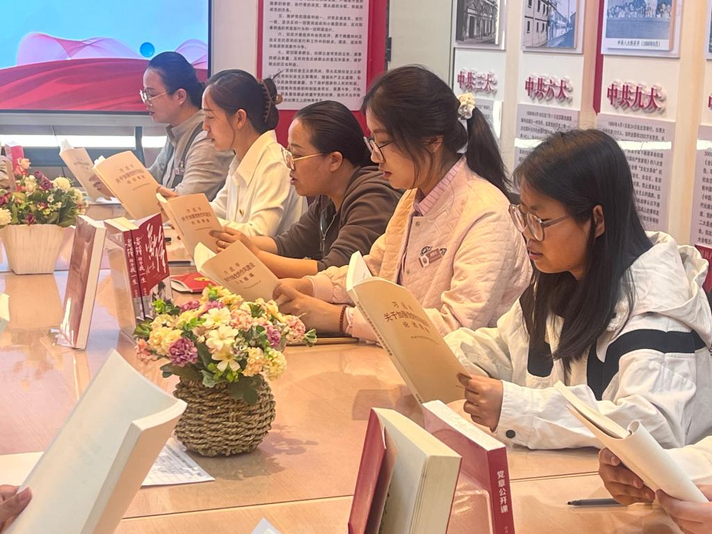 随后,在自由阅读环节中师生们穿梭于书架间,在知识的海洋里,用阅读丈量思想的深度。党员教师雷涛说道:“这些论述不仅是理论指南,更是我们日常教学与生活的行动准则,时刻提醒着自己肩负责任。”