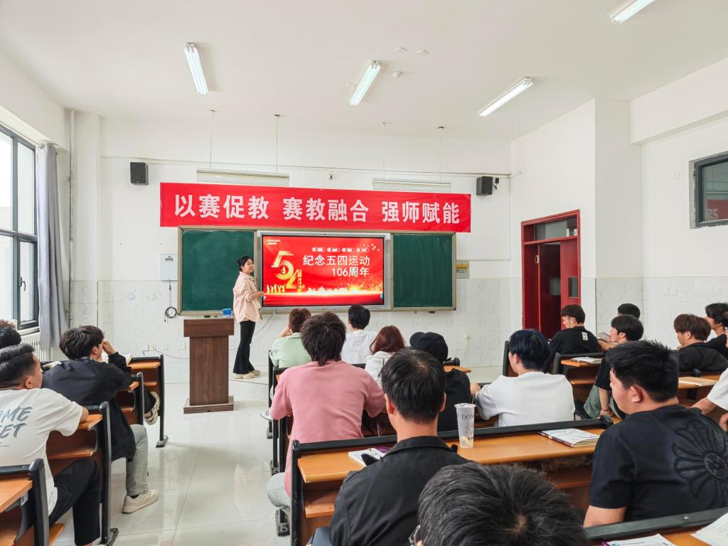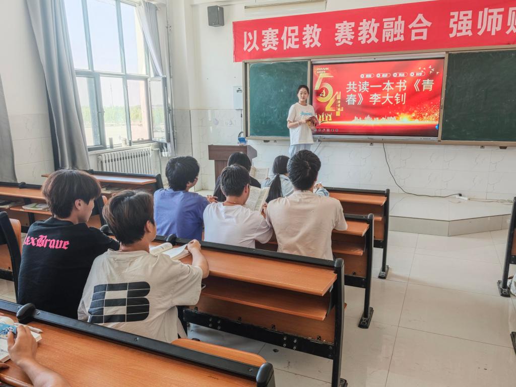 当日上午,在燕赵楼举办的五四精神专题学习中,青年党员教师丁婕通过历史事件与人物故事,系统讲解五四运动的发展脉络与时代价值。随后,衡怡欣老师带领学生研读《狂人日记》《青春》等经典文学作品,解析文本中的爱国情怀与奋斗精神,引导学生从文学视角理解五四精神内核。