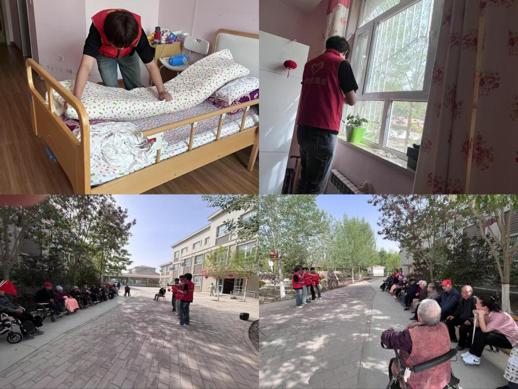 当日下午,在5名青年教师带领下,同学们来到铁门关市孔雀社区养老院进行慰问服务,学生们为老人整理房间物品、更换床单被套,与老人交流倾听生活故事,并表演歌曲、舞蹈、诗朗诵等文艺节目,现场充满欢声笑语。青年教师同步与养老院工作人员座谈,深入了解服务需求。