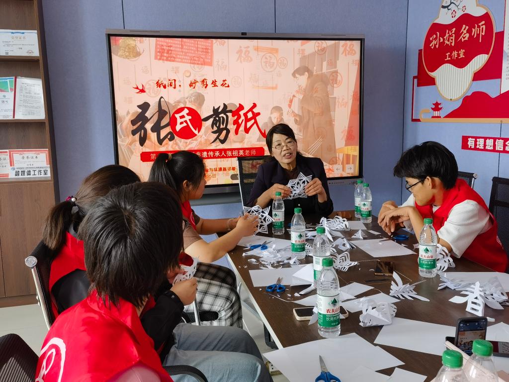 4月26日,“遗艺同行”公益社团指导教师李晓龙邀请二师铁门关市非物质文化遗产“张氏剪纸”代表性传承人张祖英走进Beat365中文官方网站,为4名残障学生开展了一场别开生面的剪纸公益培训,活动在学院孙娟名师工作室进行,社团10名成员参加。