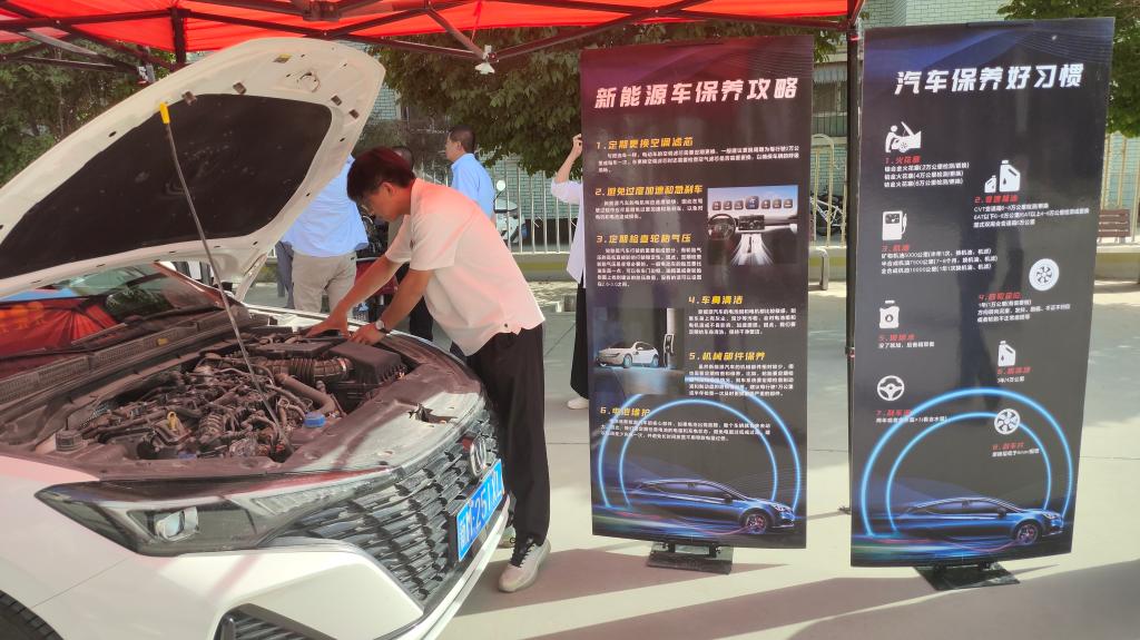 活动现场,师生分为知识宣讲、义务维修和简易保养三个小组。知识宣讲组通过展板、实物演示及互动问答,向居民讲解新能源汽车使用常识、智能网联技术及行车安全知识,重点演示轮胎检查、油液更换等操作;义务维修组在教师指导下检修社区车辆刹车异响、灯光故障等问题;简易保养组提供免费机油更换、空调滤芯清洁服务,并指导居民掌握基础保养技能。
