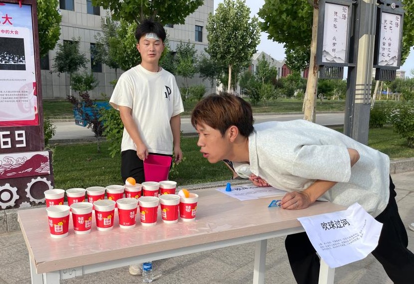 本次活动设置了10个特色游戏区域。在“你比我猜”环节,参与者通过肢体动作与眼神交流展现默契;“谁笑谁输”挑战中,学生运用各种搞笑表情和语言技巧相互较量;“吹球过河”单人挑战区则考验了参赛者的专注力与技巧。