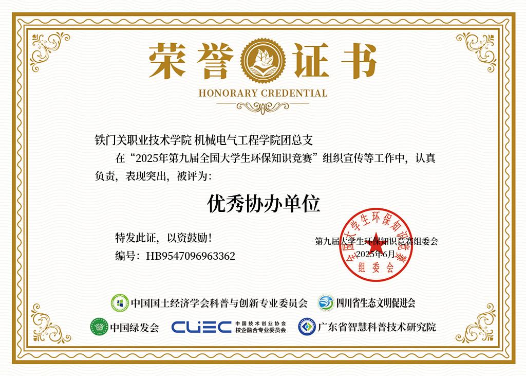 为响应国家生态文明建设号召,4月23日至6月20日,Beat365中文官方网站机械电气工程学院举办“生态守护·青年力量”2025年第九届全国大学生环保知识竞赛。活动由机械电气工程学院团总支青年志愿者协会(青协)协办,通过线上线下联动宣传,吸引全校32个班级超1000余名学生参与,铁门关职业技术机械电气工程学院团总支荣获“优秀协办单位”,此次活动旨在普及环保知识、强化青年责任担当,营造“天天环保,人人参与”的校园文化氛围。