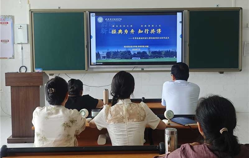 7月12日,公共基础学院党支部创新搭建跨区域协作平台,邀请绍兴职业技术学院阳明学院党支部优秀党员教师李婕,通过云端连线为学院语文教研组教师开展专题培训。李婕以“经典为舟 知行共济”为主题,深度解析中华经典诵写讲大赛的备赛策略与育人价值,分享赛事指导经验。这种东西协作模式既拓了教师们的专业视野,也为党建与业务融合提供新范式。