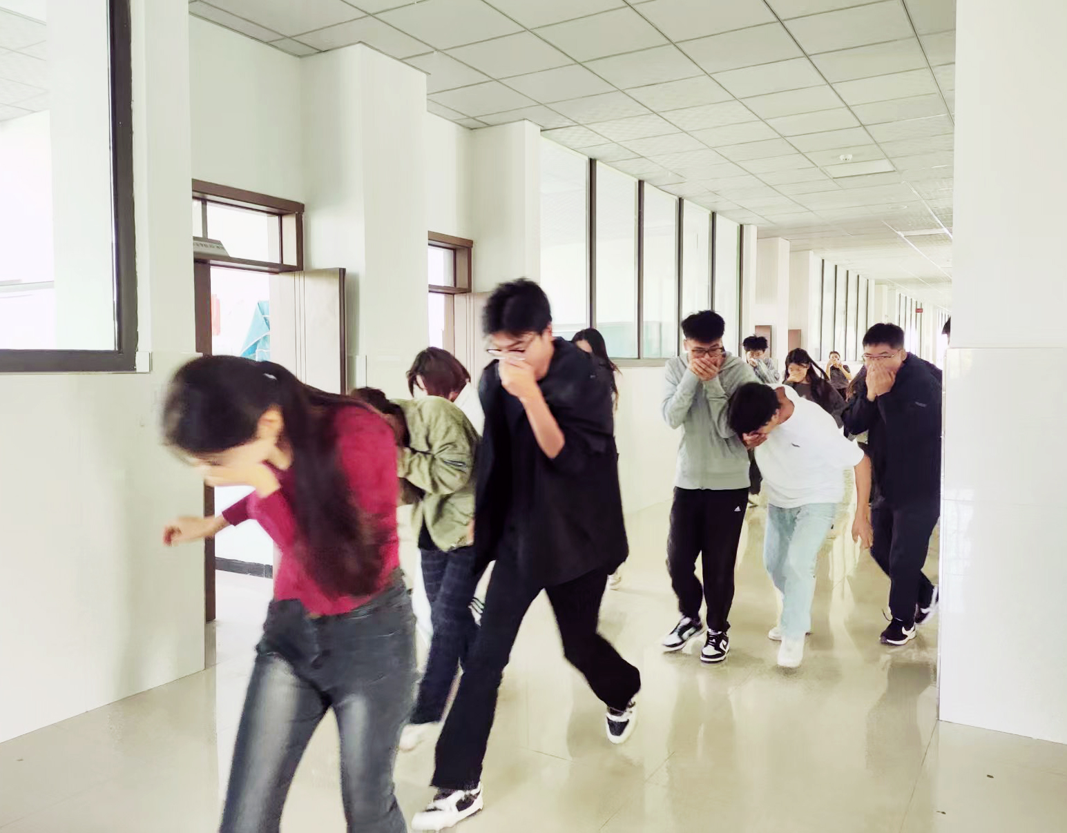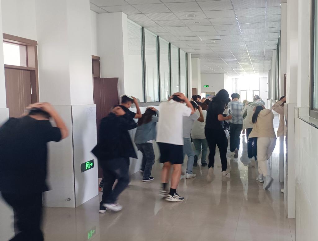 作为活动的重要环节,防火演练模拟真实火情场景。警报响起后,学生在教师指引下沿预定路线迅速、有序疏散至安全区域。整个过程组织严密、响应及时,有效检验了学院应急预案的可行性与师生的实战能力。