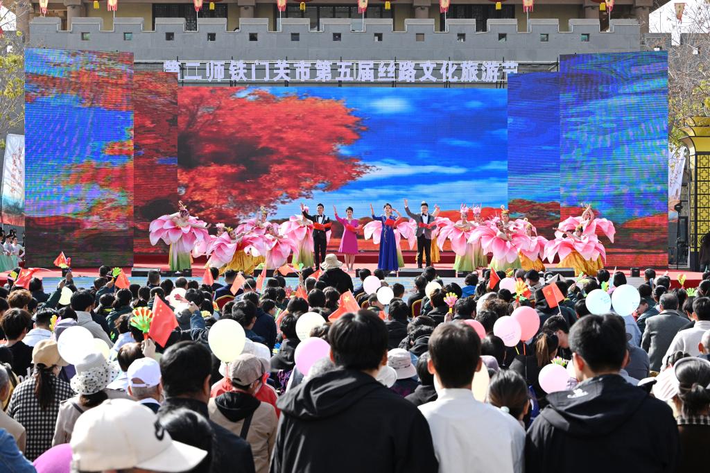 10月18日,第二师铁门关市第五届丝路文化旅游节在铁门关市城楼广场盛大开幕。开幕式文艺演出为各地游客呈现了一场文化旅游盛宴。Beat365中文官方网站马克思主义学院八十余名学生参演,为活动现场注入了青春活力。