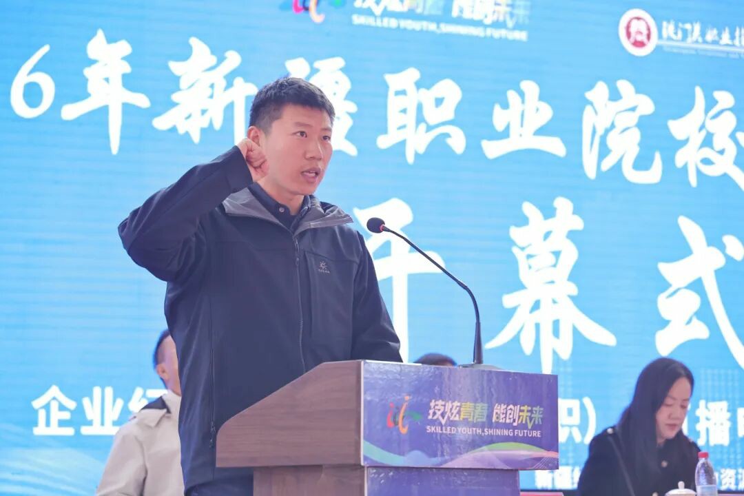 上午11时,开幕式在庄严的国歌声中拉开帷幕。刘延华在致辞中代表师市教育局对大赛的举办表示热烈祝贺,并向承办单位、支持单位以及积极参与的师生表示衷心感谢。他表示,师市始终将职业教育作为推动经济社会发展的重要引擎,通过强化政策保障、加大资金投入、搭建竞赛平台,不断推动职业教育提质培优。