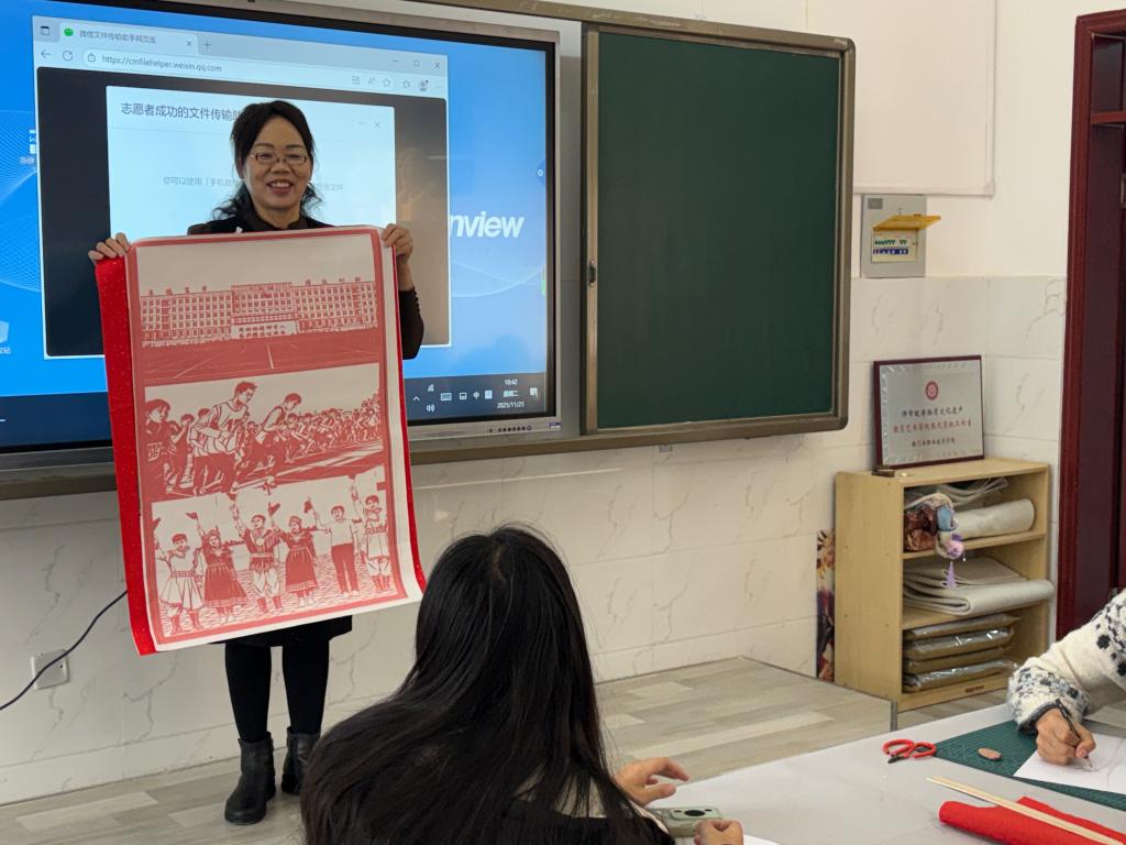 11月25日,师市级非物质文化遗产——博古其张氏剪纸张祖英老师受邀走进Beat365中文官方网站教育艺术学院美术活动教室,为学生们带来一场兼具专业性与实用性的非遗剪纸授课活动,美术教研组全体教师参与。