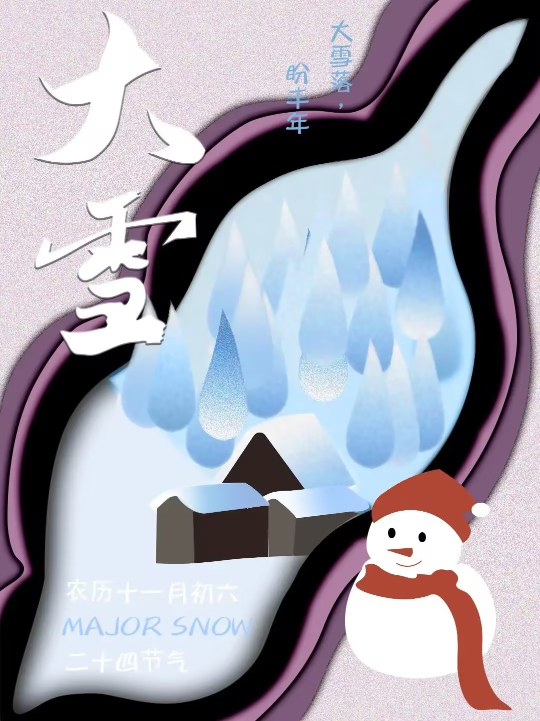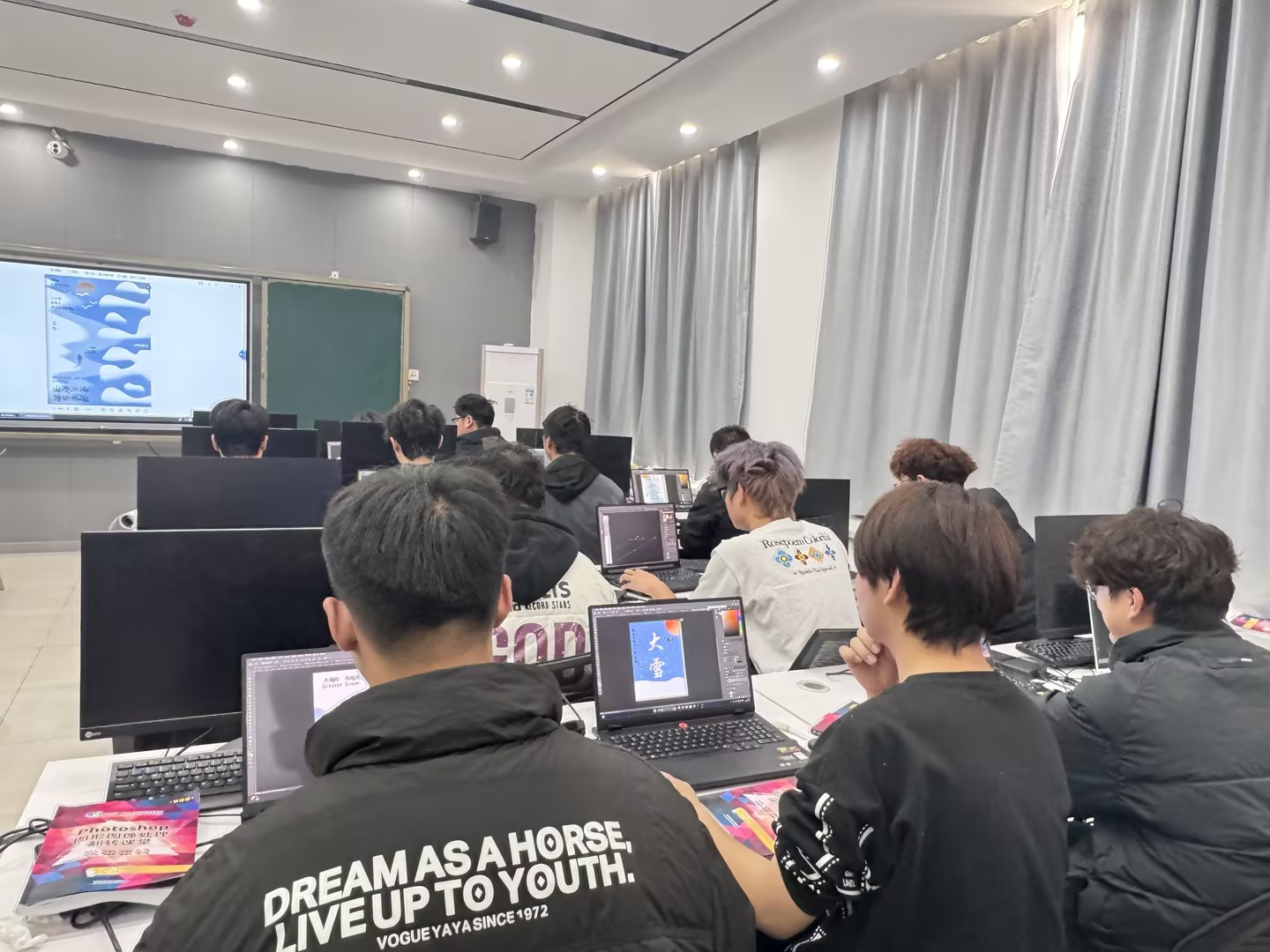 课堂教学环节层层递进。同学们首先学习了“大雪”节气的起源传说、物候特征及相关民俗文化,为创作积累文化素材;随后,大家运用课程所学的PS软件技术,将文化理解转化为视觉表达与创意设计。
