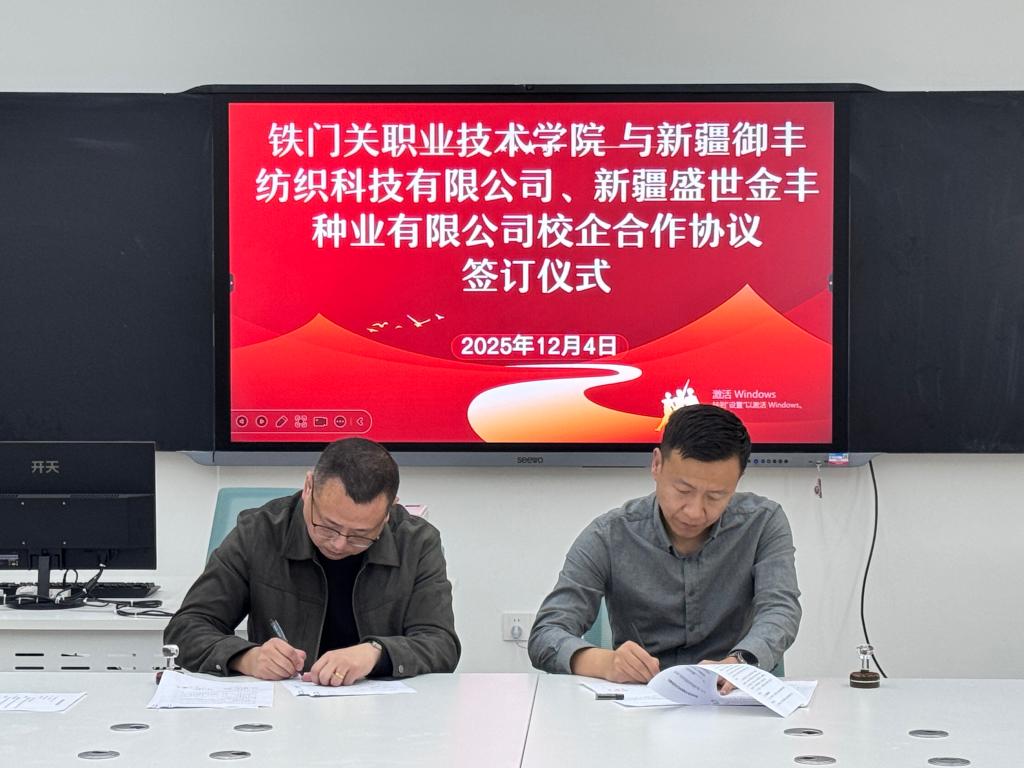 12月4日,Beat365中文官方网站现代农业学院与新疆御丰纺织科技有限公司、新疆盛世金丰种业有限公司校企合作签约仪式在学院精技楼举行。现代农业学院负责人、教师代表与企业方代表共同出席活动,标志着校方在推动职业教育与区域产业协同发展方面迈出新的坚实步伐。