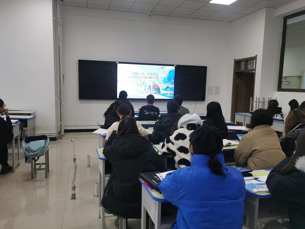 活动伊始,麻淑芳老师系统解读了国际残疾人日的核心内涵,结合真实案例科普了残障人士在日常出行、生活自理中的实际困境;详细讲解了与残障人士沟通的礼仪规范及帮扶技巧,全面介绍了关爱残障人士的正确方式,纠正了常见认知误区;并发起“关爱无障,青春同行”倡议,号召全体学生从日常小事做起,主动关爱、帮扶残障人士。