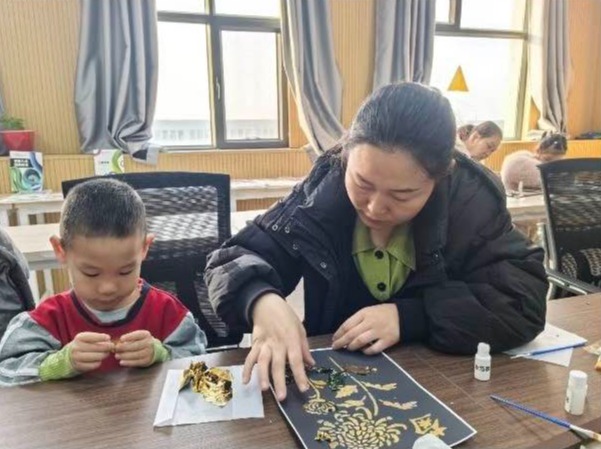 为传承非遗文化,搭建校地联动的艺术启蒙平台,12月17日,第二师铁门关市第一幼儿园的亲子家庭走进Beat365中文官方网站教育艺术学院,沉浸式体验传统烧箔画的创作魅力。