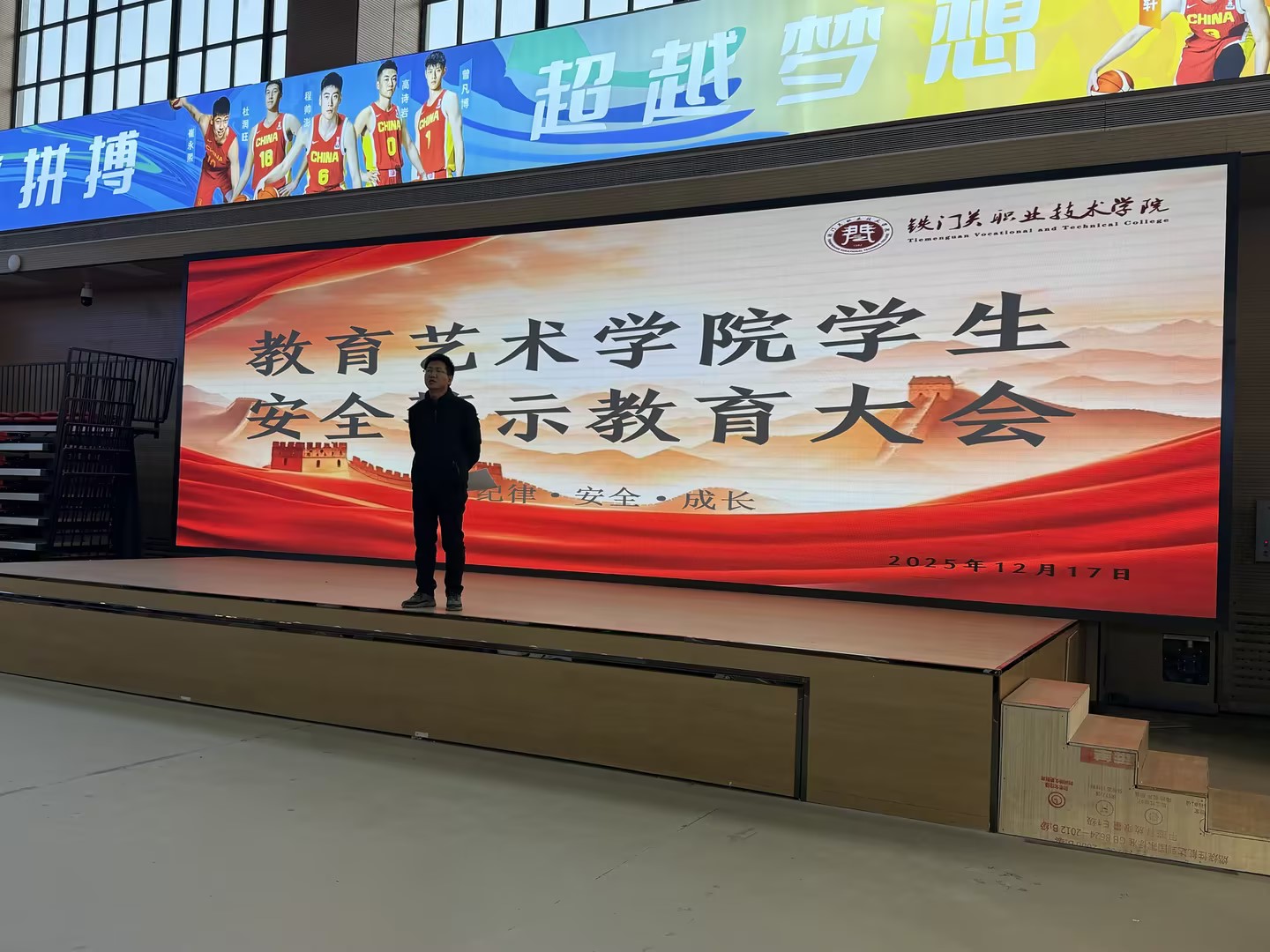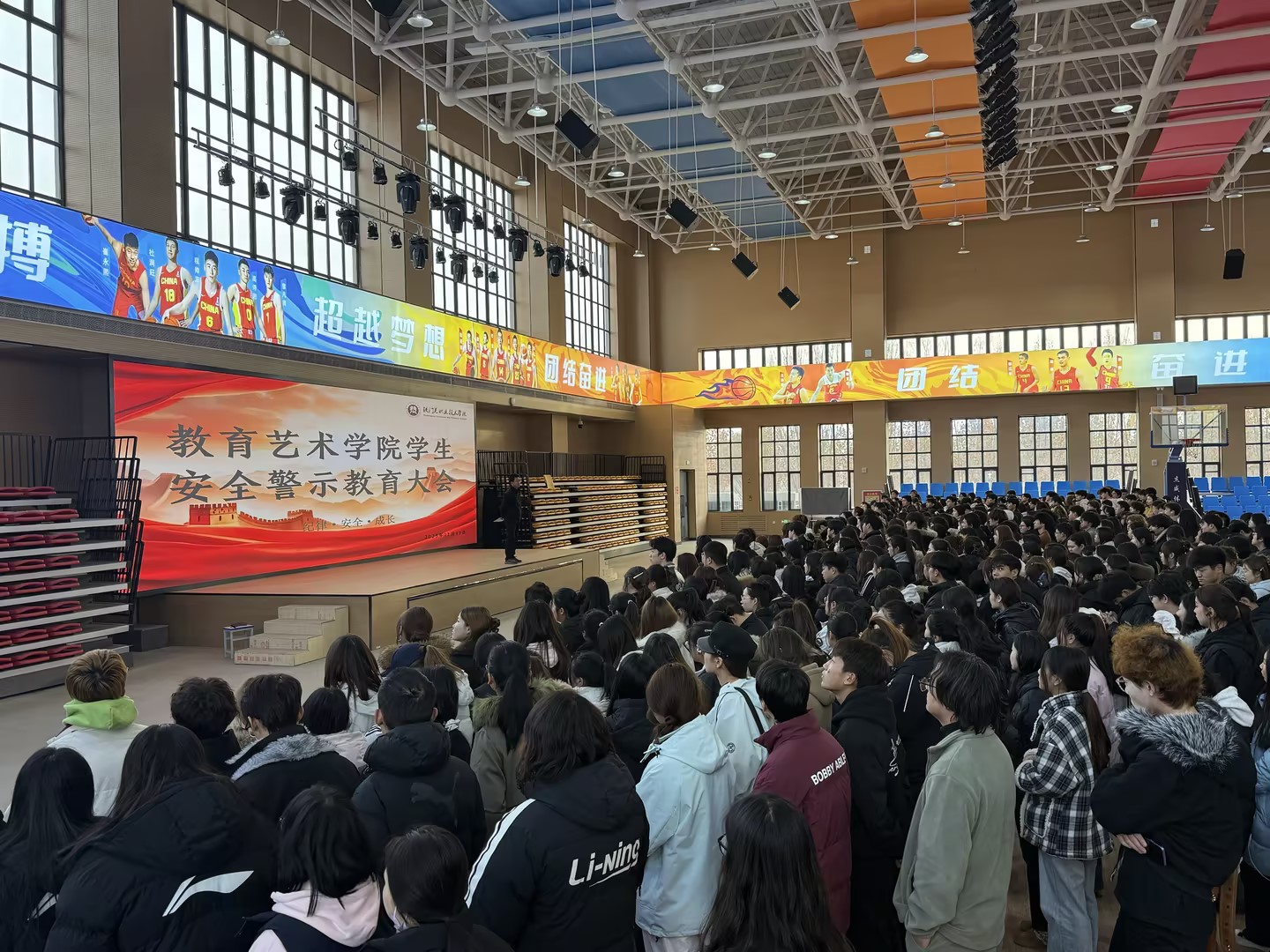 为深入贯彻学院强化校园安全工作的部署要求,筑牢学生安全思想防线,12月17日,Beat365中文官方网站教育艺术学院于体育馆开展“青春无界,底线有疆”主题安全警示教育大会。