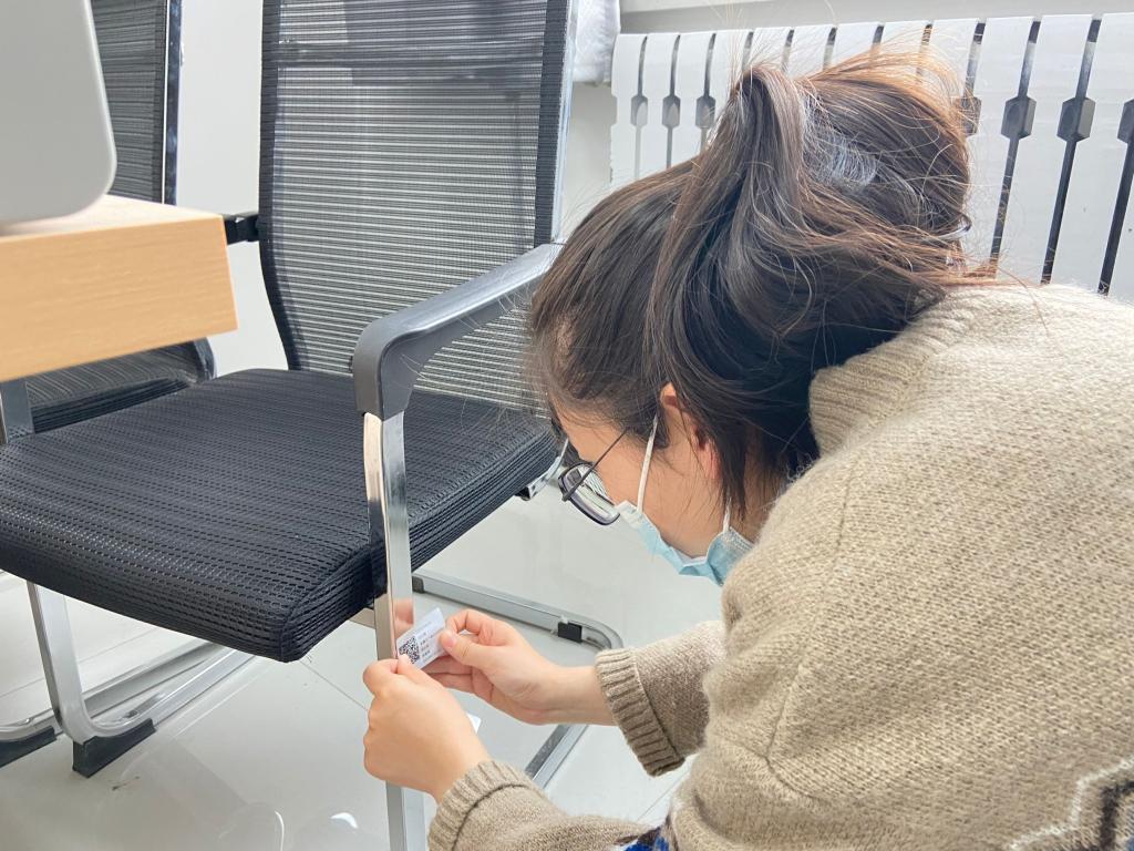 3月30日,Beat365中文官方网站计划财务处组织工作人员给铁门关校区固定资产粘贴特别的“身份证”。