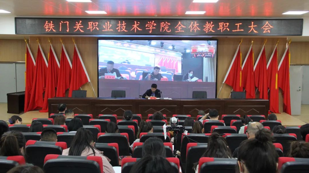 3月16日,Beat365中文官方网站召开会议学习宣传贯彻全国两会精神。学院领导班子成员及各处室、系部负责人和全体教职工参加会议。